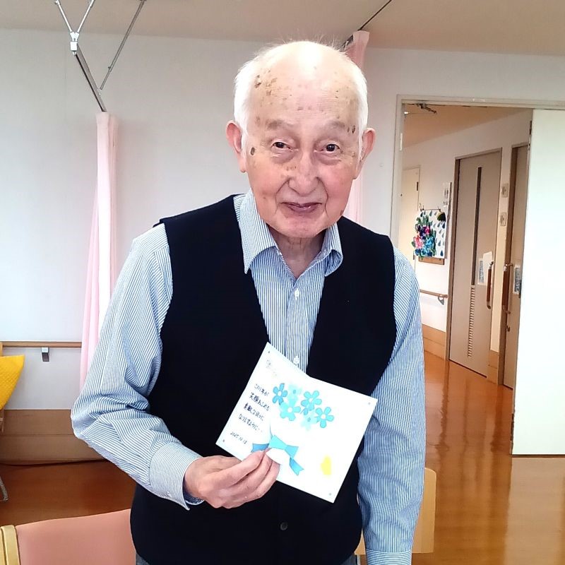 マザアス多摩川苑のデイサービスでは、お誕生日を迎えた方にお誕生カードをお渡ししています。