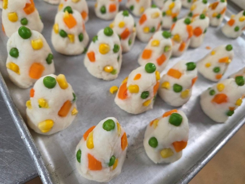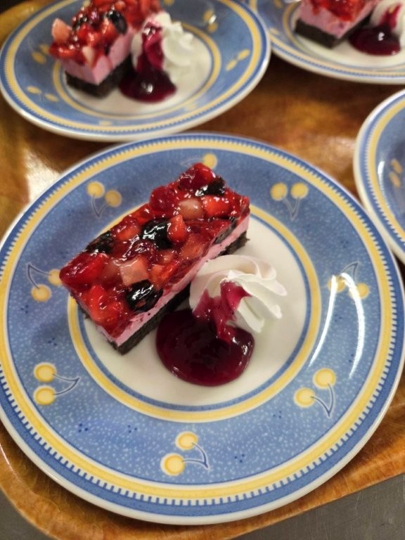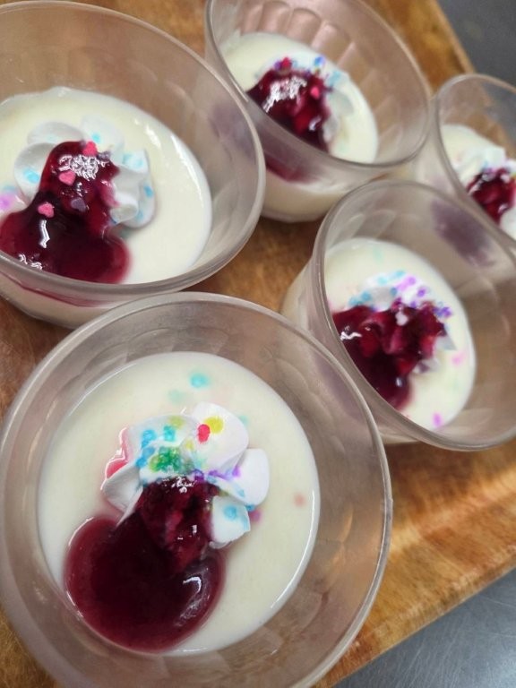 おやつのチーズケーキ風ムースもカラースプレーでデコレーション