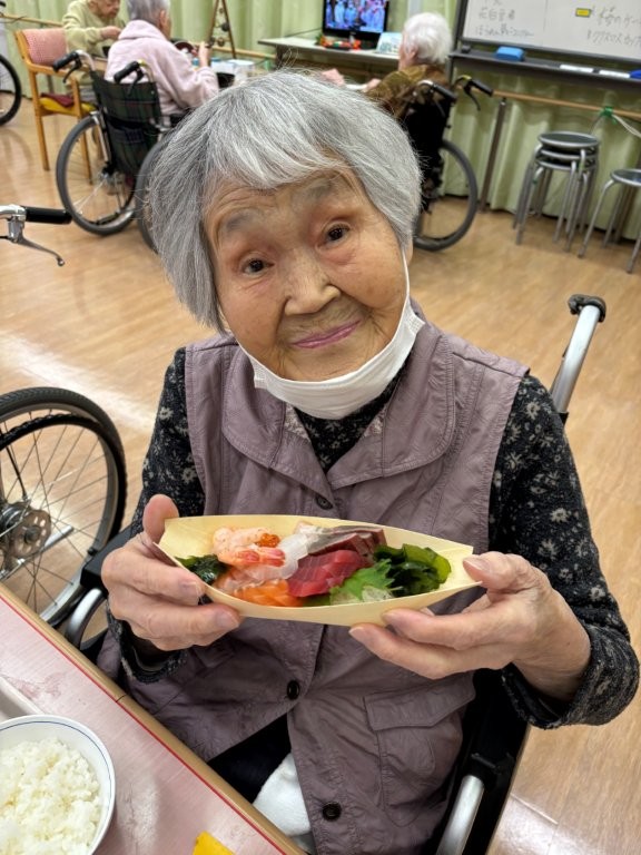 「お刺身大好き」と笑顔