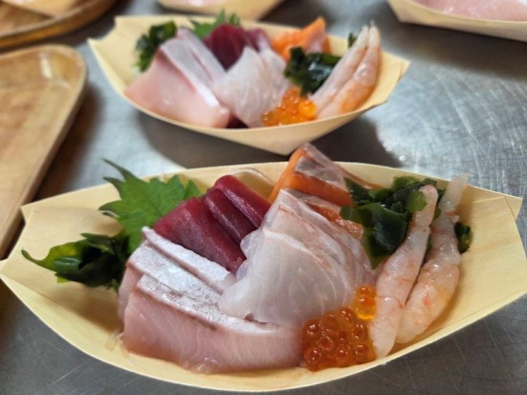 まぐろ・サーモン・ぶり・鯛・甘エビ・いくらと小舟にのったミニ舟盛りです