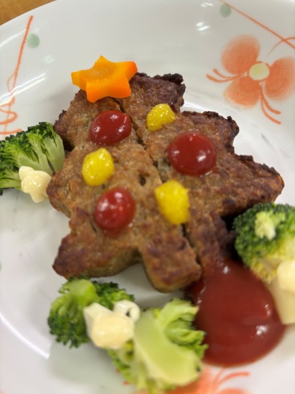 12月25日の夕食は「もみの木ハンバーグ」