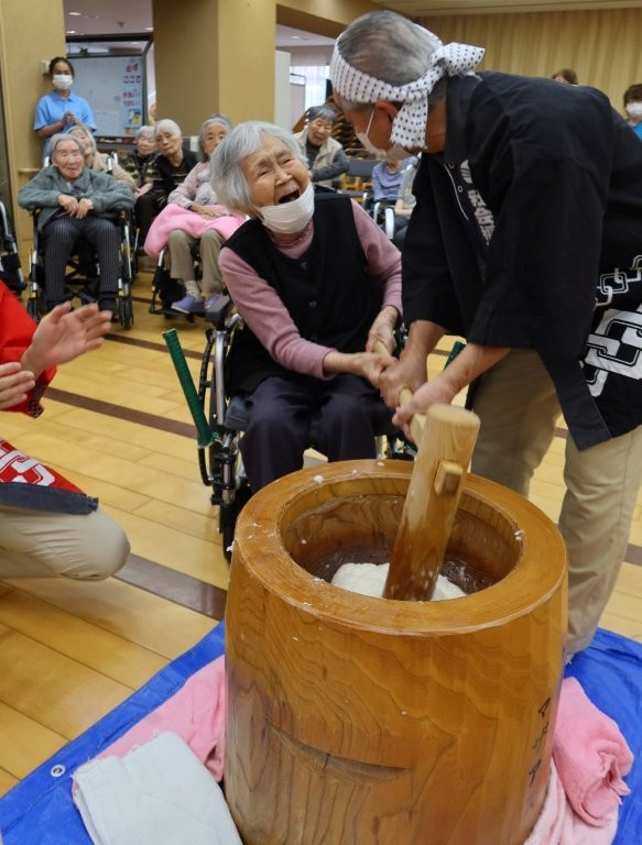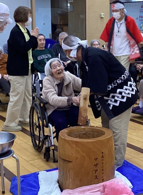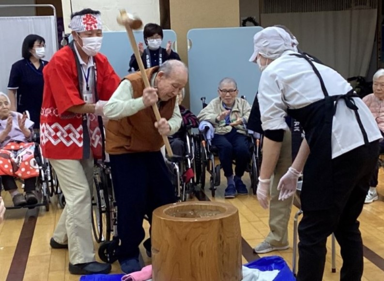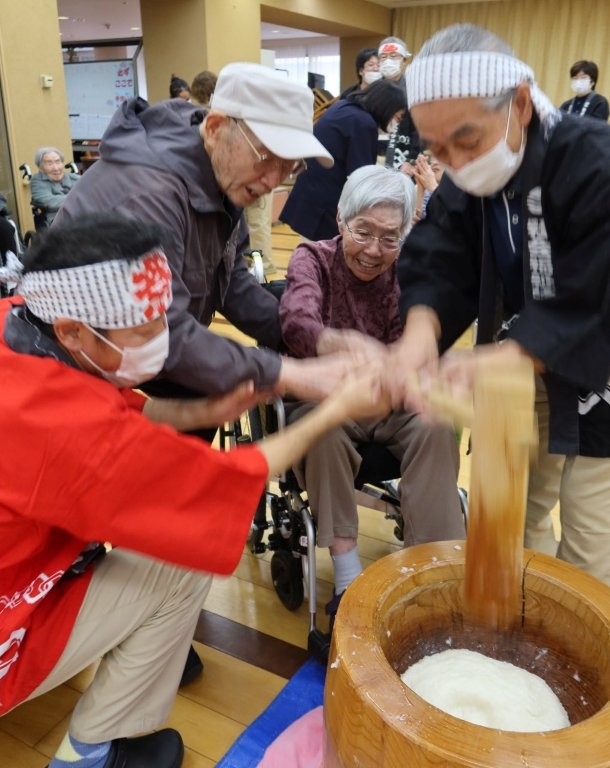 笑顔 拍手 たくさん飛び交い、総勢41名の方々でお餅をつきました!