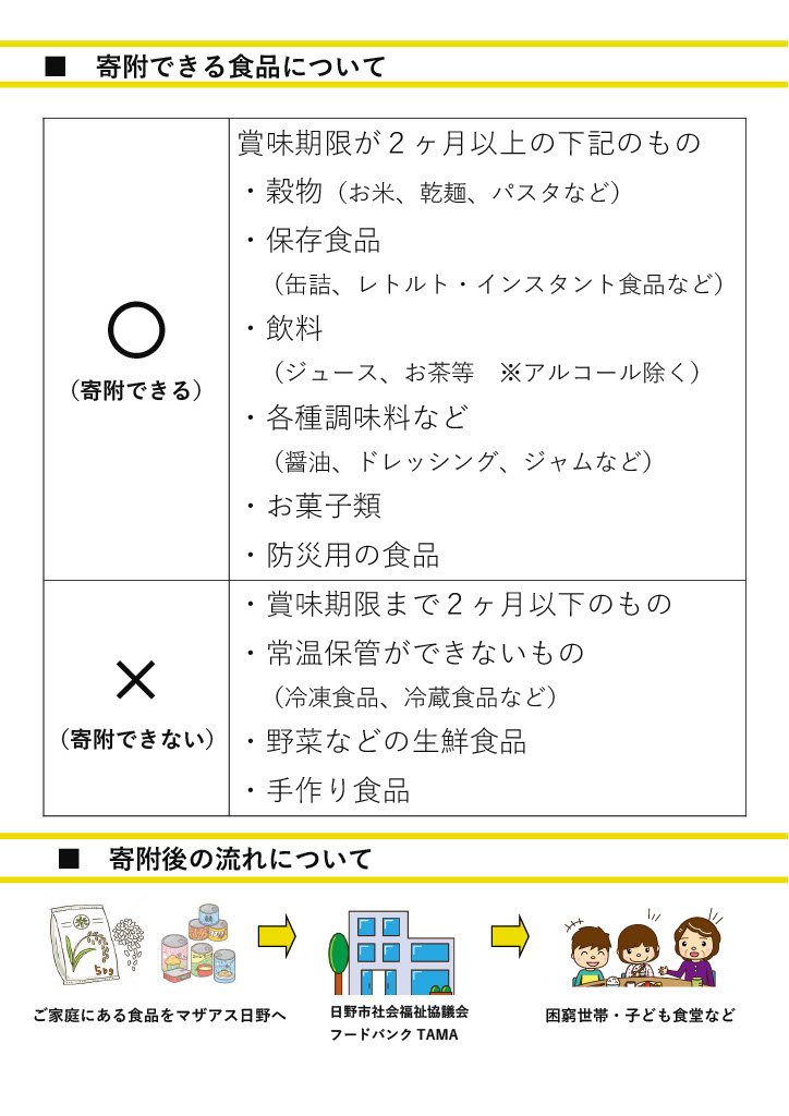 2026年4月14日(火)~5月8日(金)の期間、マザアス日野1階ロビーにて食品の集荷を行っています