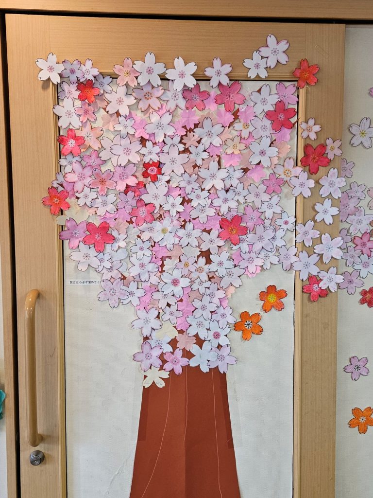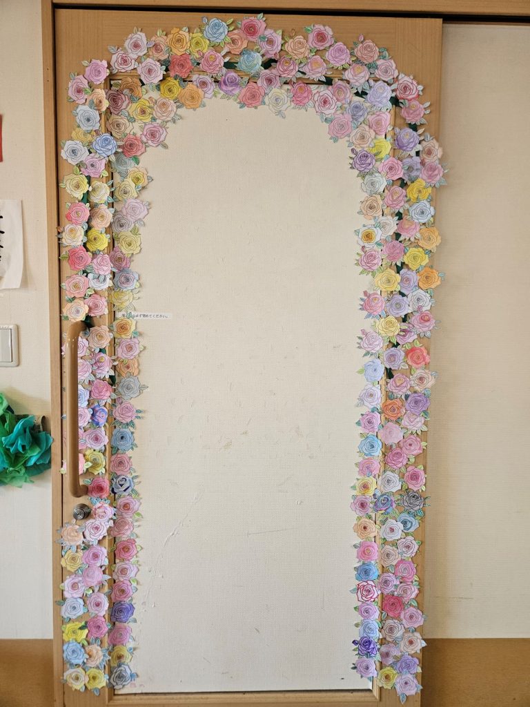 毎月、ご利用者の皆様が共同でその季節毎の作品を作り、リビングに飾っています。いつもとても素敵な作品で訪問された方々を笑顔にしてくれます。